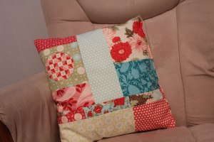 you are getting a sneak peak at her bedding with this pillow. i pieced it together using some remnants of the fabric that is in her room.