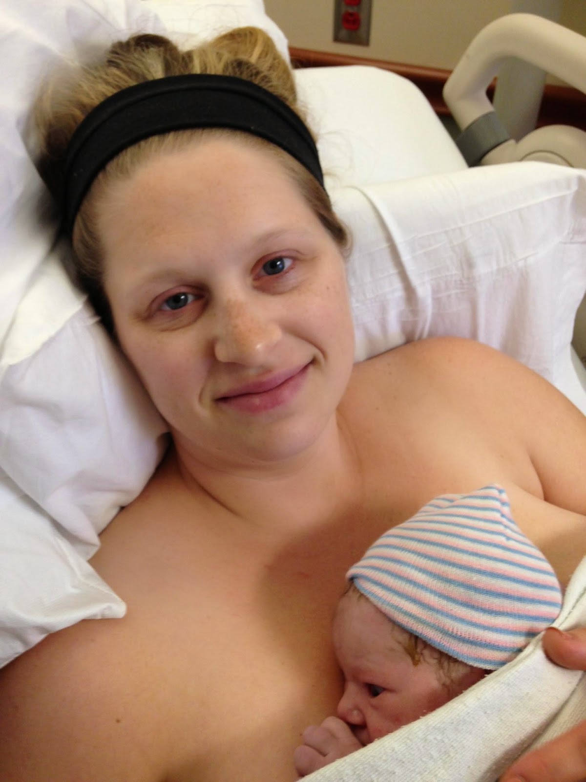 My mother in law arrived on time, and got to witness a few of the contractions take over my body. Being that she had only had C-sections she was completely freaked out, my husband assured her this wasn’t even that bad. Off to the hospital we went and were checked in right away. After being hooked up, the doctor who I’ve been waiting for three pregnancies to finally deliver me checked to see how far I was progressed. I was a 5! Half way there, and my body was so ready that my water broke during my exam. Fantastic, that meant no pitocin! Any woman who has had pitocin knows that it is the devils juice and you don’t want it.